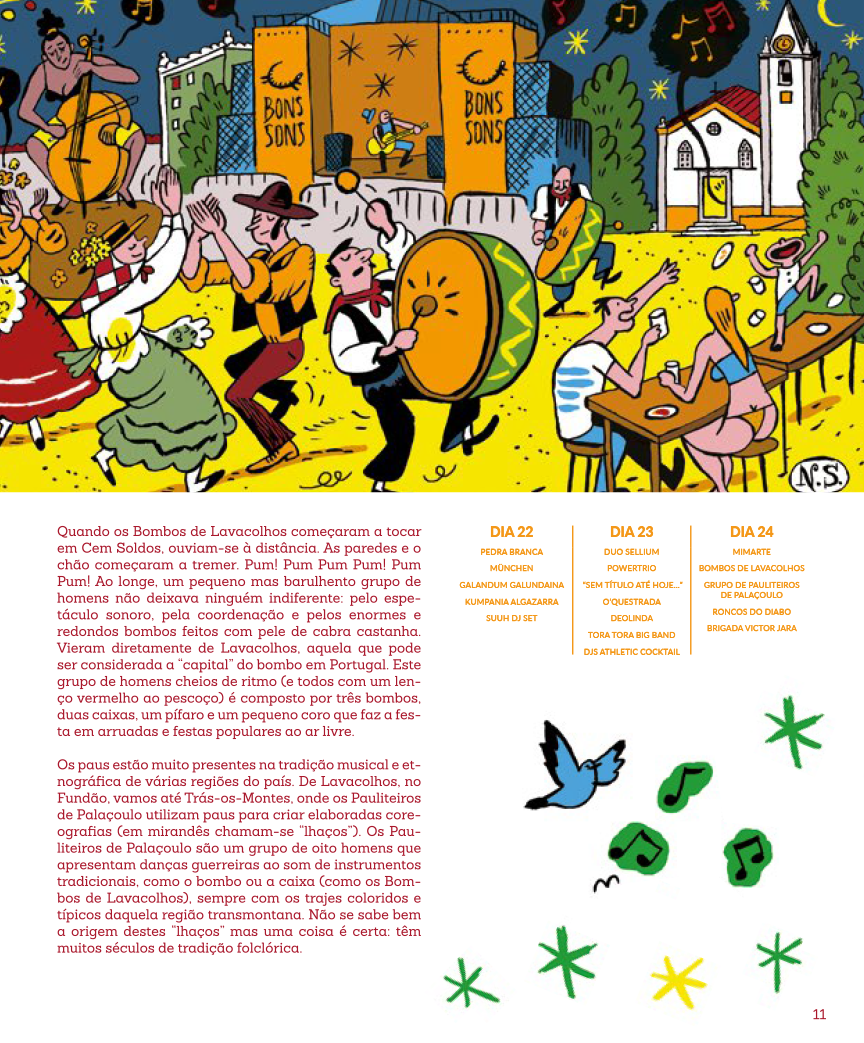 Produzido numa parceria entre as Edições Escafandro e o BONS SONS, o livro faz o percurso do festival de música portuguesa que se realiza desde 2006 na aldeia de Cem Soldos, no concelho de Tomar através da ilustração de inúmeros momentos marcantes e de 50 músicos e bandas portugueses, representados por 5 ilustradores e com textos de 3 autores.